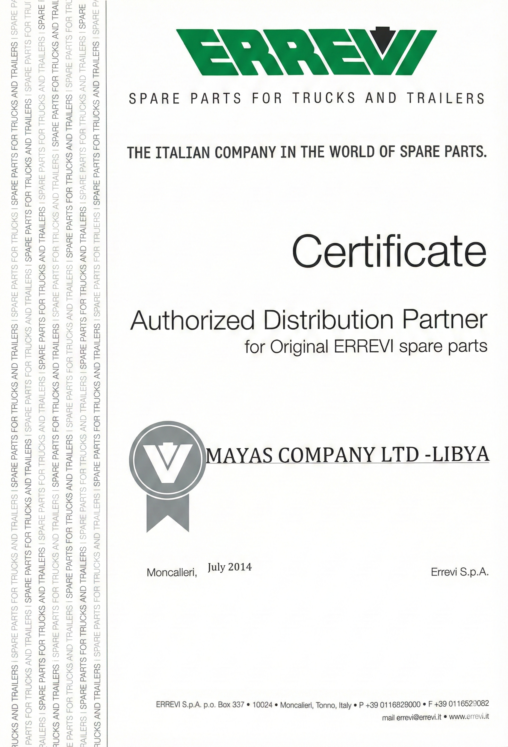 شركة مياس وكيل معتمد لدى شركة ERREVI